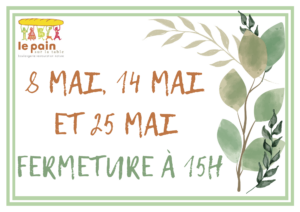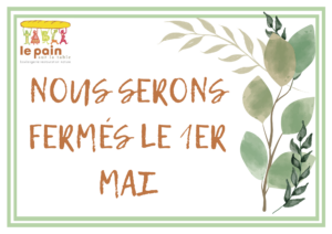 Suite aux nouvelles taxes sur les sacs papiers et dans le but de réduire la quantité d’emballages jetables, nous ne fournissons plus de sacs papiers pour le pain.